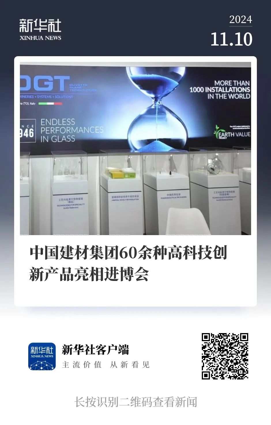 来源:新华社、国资小新、集团各相关企业 发布时间:2024-11-1211月10日,第七届中国国际进口博览会圆满闭幕。beat365体育官方网站组织中国建材股份、中国建材总院、凯盛集团、中建材联合投资、地勘中心等企业展出60余种高科技、新材料产品,包括先进陶瓷轴承材料、非线性光学晶体等多项“中国首创、世界一流”的产业化创新成果,以及碳纤维、破碎机、无人机用Ⅲ型储氢气瓶、锂电池隔膜等领域的技术成果。集团展馆获得新华社、国资小新等媒体报道,点赞中国建材科技范儿。跟着小料一起来看一下吧~
