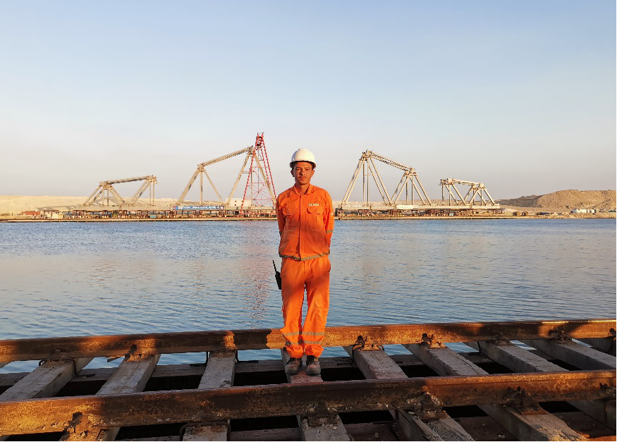 2020年,蒙塔兹作为成都院总承包的埃及苏伊士运河EL-FERDAN大桥项目的土建主管,第一批到达项目现场。项目东靠埃及西奈半岛,当地社会安全局势紧张,整个项目处于军事作战部队戒严区,项目所有人员、设备和材料进出都会经过严格的审查,稍有疏忽便会耽误项目进度。但这难不倒蒙塔兹,他凭借自身优秀的沟通能力,在项目前期积极协调业主与军方的关系,精心周密安排,保证了人员设备及材料的正常运送,保障了项目的顺利开展。