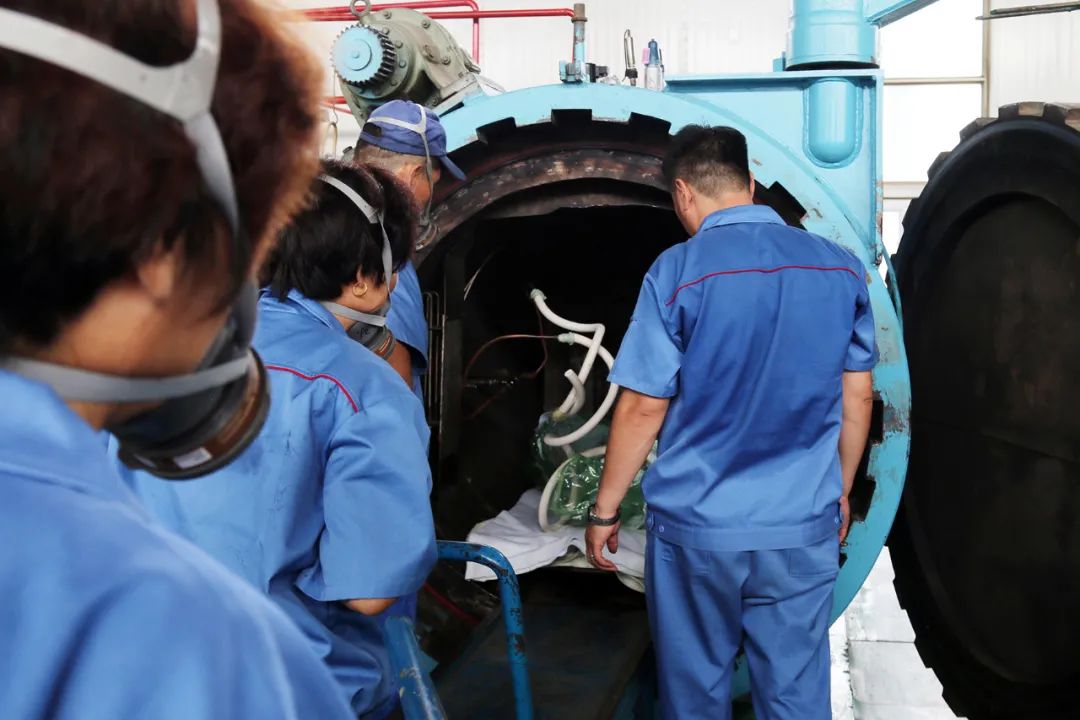 在固化炉旁对产品进行最后检查