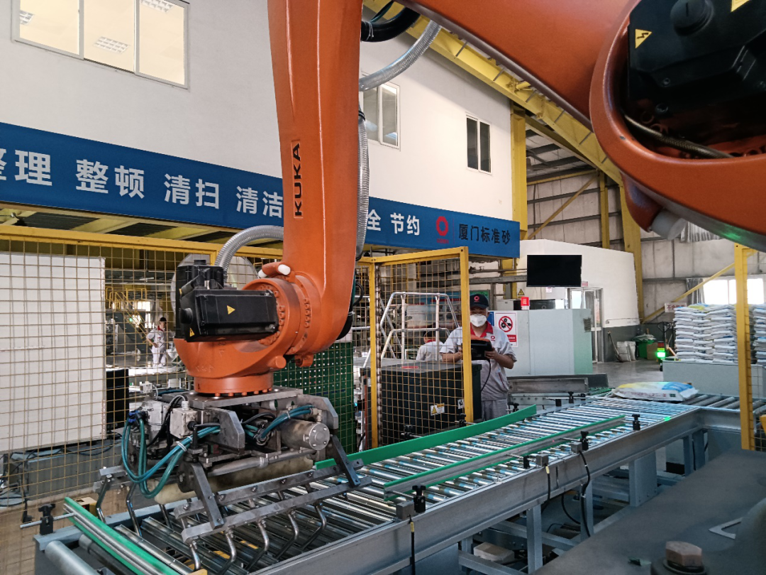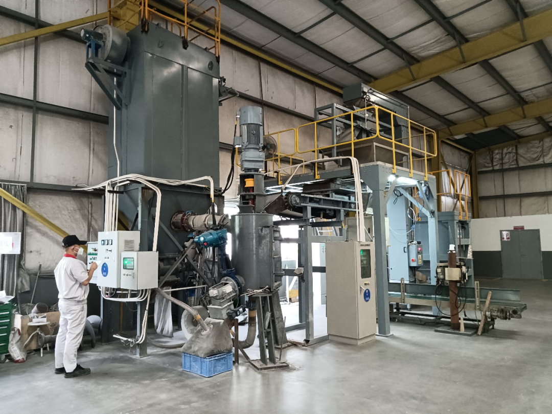 2018年,公司为淘汰落后产能,提升设备运行效率,降低员工劳动强度,历经半年实地走访调研,决定把12台一次包装机更换为4台12斗秤新式包装机,数量减少2/3,产能提升10%。一次包装机主要是对粗、中、细三种单级砂按比例进行混合包装,对单级砂的重量和总重量要求都比较高(每小包总重量控制在±3克以内),要达到要求每种单级砂重量必须控制在±1克以内,对设备的要求非常高。虽然12斗秤技术已经非常成熟了,但这是第一次应用在砂子包装上,实际效果和设计上还是有一些差距,他在厂家技术人员的指导下,带领班组成员不间断地试验,发现不合理的地方积极探索改良,最终包装机达到了我们验收标准,顺利投产,包装质量大幅度提升,为公司自动化生产迈出一步。