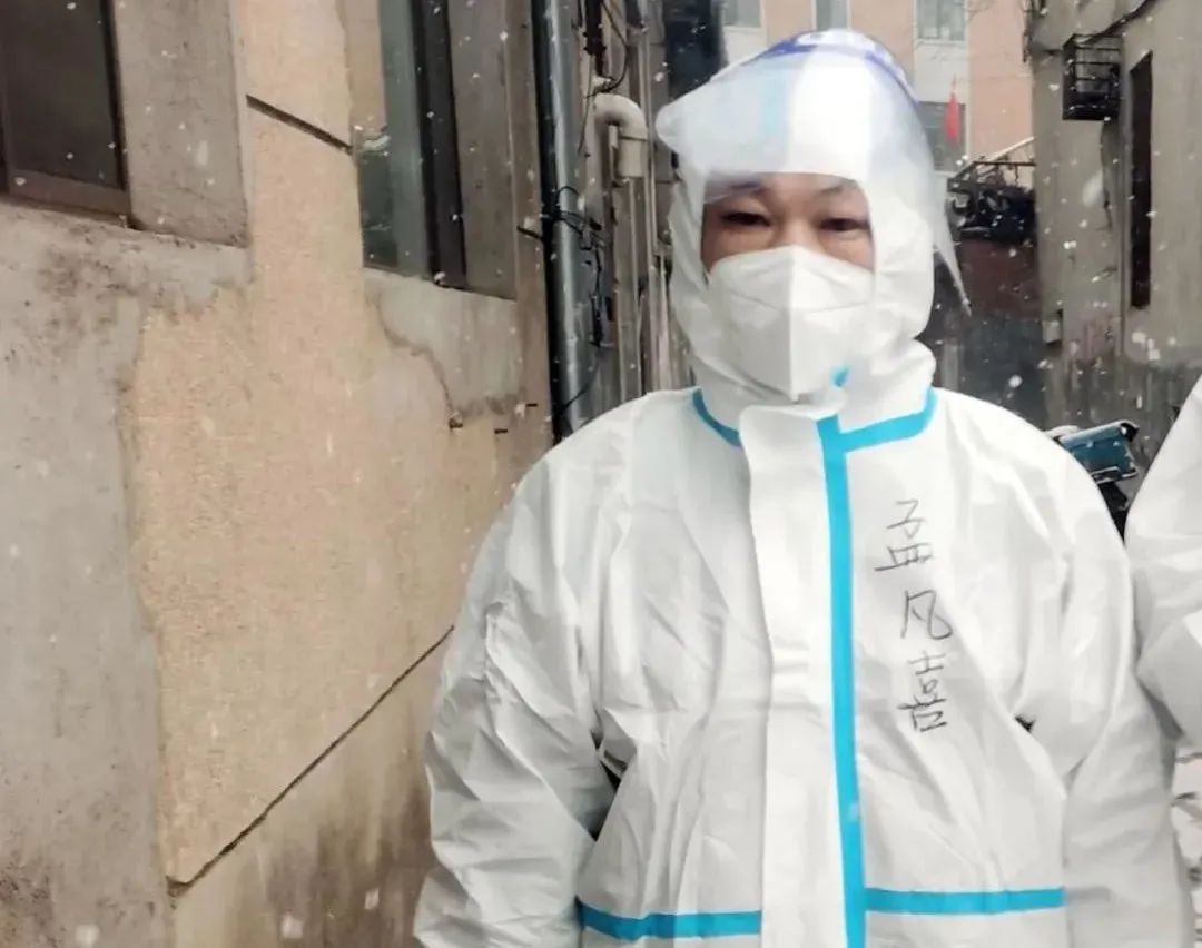 集合时,天还是好好的,不知何时就下起了雪。由于小区封控,我们前往每栋楼时都要绕行,身上被雪水和汗水打湿,护目镜起雾看不清路,在旧楼梯过道上时不时撞墙,手套破了,记录表湿了,就垫在墙上写……每个人都在努力,没有人喊苦喊累,更没有人放弃。