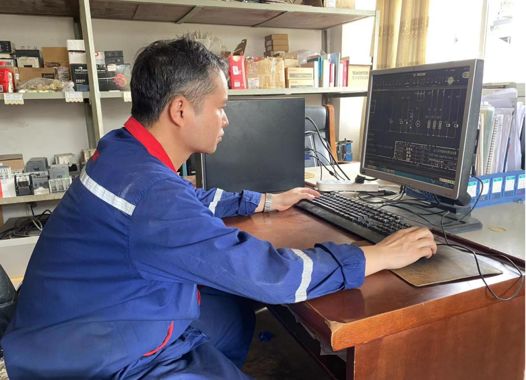 在生产线建设至投产期间,王昆参与了部分电气的安装调试,他明白仅限于设备安全运行还远远不够,要想办法深层次了解设备性能、易发事故,自主解决DCS控制系统及PLC程序问题等。他跟着外委工程师请教、学习,凭借着对岗位的热爱、钻研及多年的现场历练,把控制系统遇到的问题和自己学到的知识结合起来,进行归纳总结,有效帮助问题排除、程序修复等控制问题。