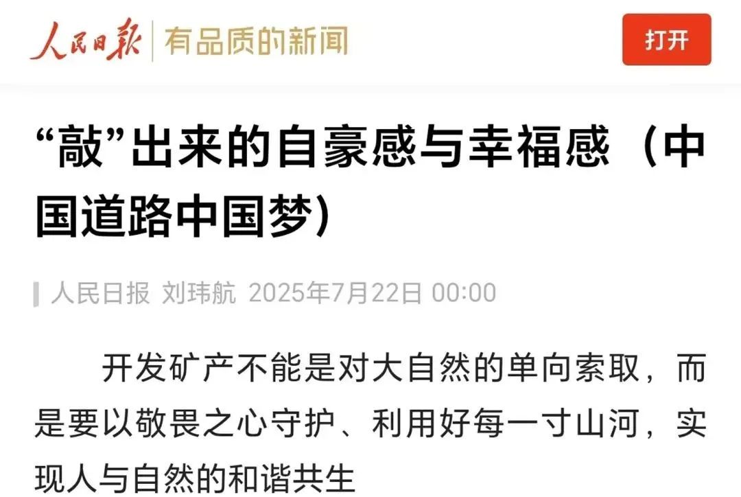 开发矿产不能是对大自然的单向索取,而是要以敬畏之心守护、利用好每一寸山河,实现人与自然的和谐共生。