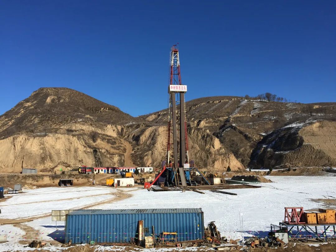 陕西总队延川县永坪地区岩盐矿普查项目钻探施工现场