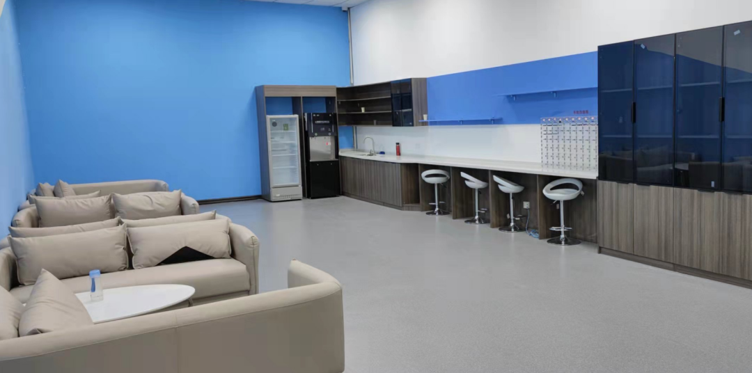 改善工作环境:连云港叶片工厂升级改造机加工车间粉尘治理设备,投入近400万元增设除尘设备,进一步降低车间内粉尘浓度。中复新水源利用车间辅房设置员工休息区,配备手机柜、书柜、净水机、冷藏柜、沙发和茶几等,让员工在工间休息时有一个舒适的空间。