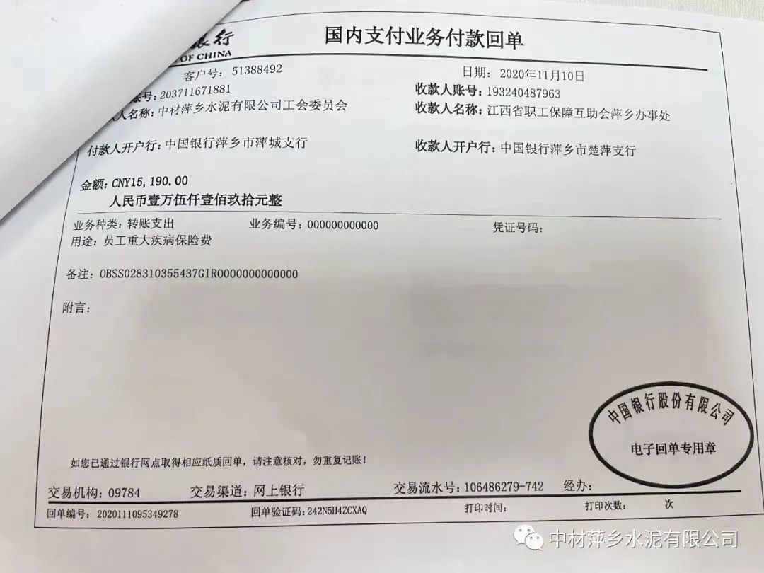 为进一步提高员工福利待遇,减轻员工个人的医疗支出负担。中材萍乡在为全体员工购买“五险两金”的基础上,额外购买了员工重大疾病保险。如果员工患了符合合同范围内的疾病,即可获得一定数额的赔偿,减轻家庭的经济负担。