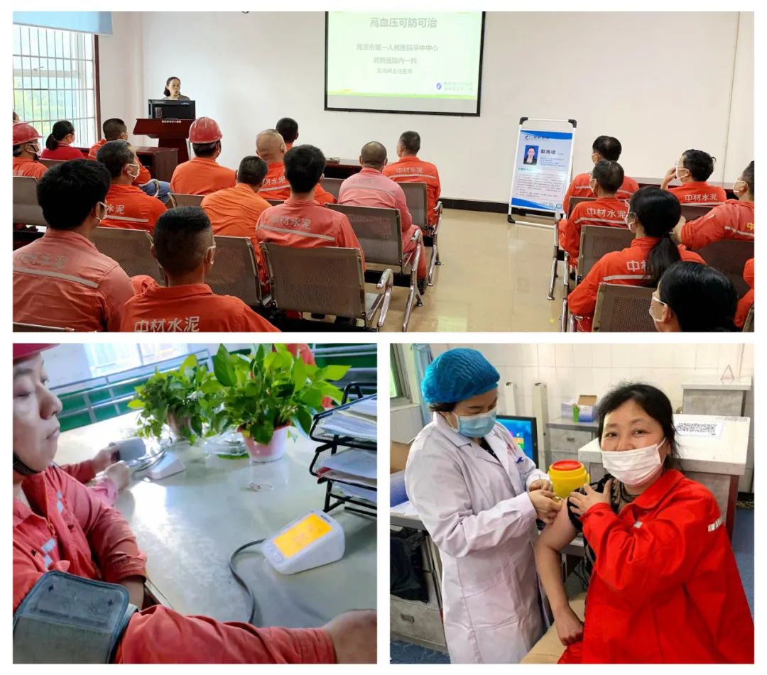 “身体是革命的本钱”,为确保广大干部职工的身体健康,中材湘潭开展了职工健康体检,组织全员完成了新冠疫苗接种,形成了有效的健康防线。同时,根据企业年龄在35岁以上的职工占比达75%的实际情况,特别邀请医生专家来企业开展健康讲座,引导员工提高健康意识,关注心脑血管方面的疾病,并为各单位配备了电子体温计、血压仪等仪器,每日进行健康检测排查,有效预防了各类疾病的突发。职工小陈是原料烧车间的一名职工,家中父母都是高血压,但自己和家人都缺乏对高血压的正确了解,所以都习以为常,平时有个头晕脑胀的也不放在心上,他说:“幸亏企业的这次健康知识普及,让我意识到高血压的危害性,现在通过吃药调理血压从180下降到了140,再也不头晕脑胀了。”