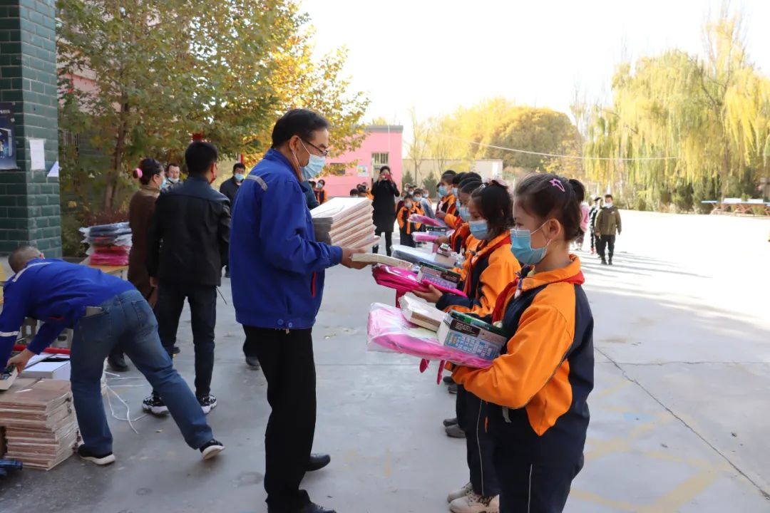 用爱守护,助梦前行,2021年11月8日和10日,库车天山水泥有限责任公司前往库车市林基路小学和库车市依西哈拉镇夏玛勒巴革村小学,为两个学校的困难学生带去了100套“爱心礼包”。