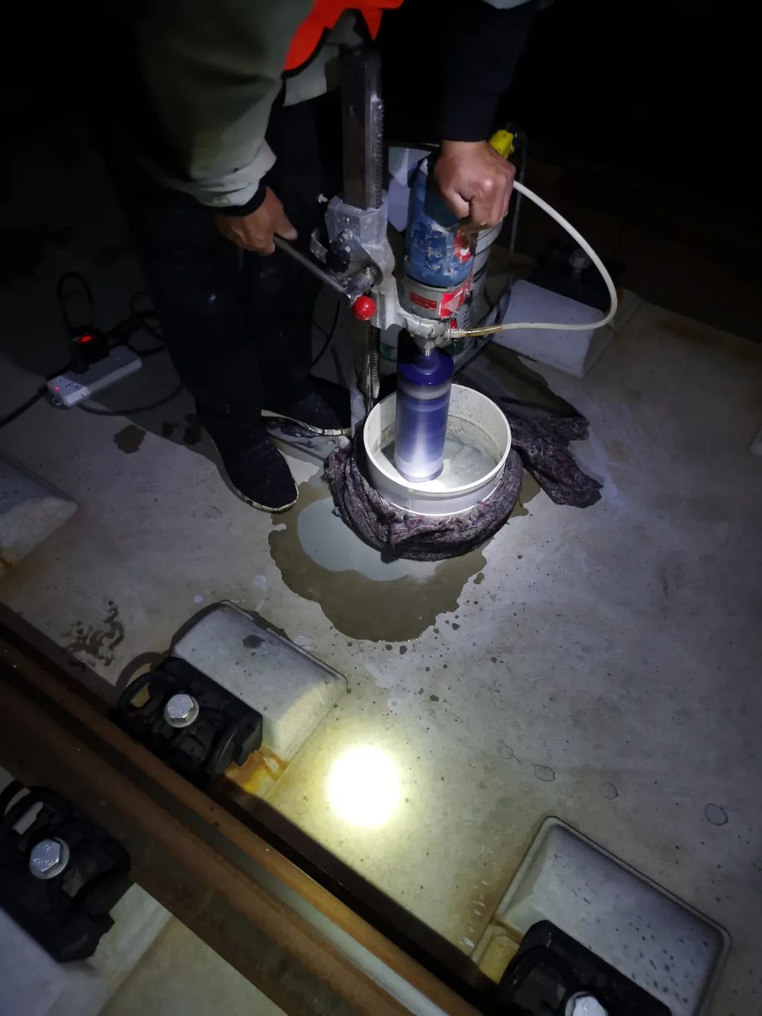 2017年3月,中岩科技生产的低粘度环氧树脂裂缝注浆材料成功应用于京张铁路道床板裂缝注浆冬季施工工程。施工期间,隧道内板体温度达-10℃,采用的注浆材料可低温固化,半小时形成力学强度,固化体具有低温柔性,可避免动荷载作用下二次开裂。