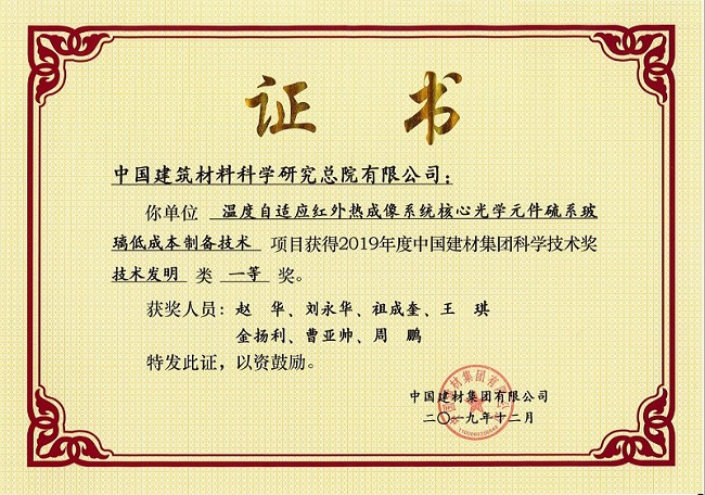 历经十年的技术攻关,中国建材总院开发了系列硫系玻璃产品,并逐渐走出一条从“光学设计-玻璃制备-精密成型-表面镀膜-镜头装调”的全产业链的发展道路,承担国家各类攻关项目4项,累计获授权发明专利14项,并先后获得beat365体育官方网站技术发明一等奖1项,中国建筑材料联合会·中国机械冶金建材工会全国委员会联合颁发的行业技术革新一等奖1项。