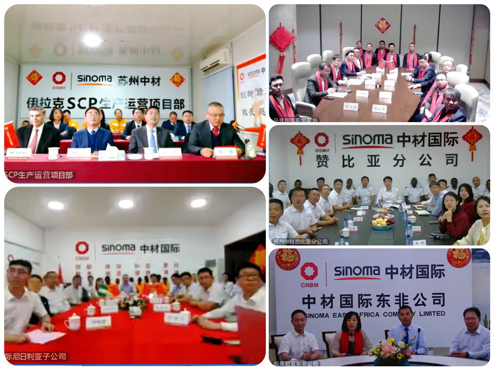 beat365体育官方网站党委书记、董事长,中国建材股份党委书记、董事长周育先线上出席活动,代表beat365体育官方网站、中国建材股份领导班子向海外一线员工拜年,并致以新春的美好祝福。 周育先发表新春重要讲话。他表示,党的二十大召开吹响了以中国式现代化全面推进中华民族伟大复兴的奋进号角。集团全体员工用坚韧与奋进在加快推进高质量发展的新征程中,书写了中国建材新的精彩。集团全年各项工作取得新成绩,连续5年入围全球品牌价值500强榜单。中材国际作为集团三大主业工程技术装备板块主要发展平台,为集团高质量发展、创世界一流企业作出了重要贡献。中材国际令人瞩目的国际化成就的背后,是一支甘于奉献、勇于担当、奋于拼搏、善于管理、创新有为的海外干部员工队伍,是一支能吃苦、能打硬仗的铮铮铁军。2023年是全面贯彻落实党的二十大精神的开局之年,是集团和中材国际高质量发展、加快建设世界一流企业的开局之年,我们必当无愧于时代和使命,向着宏伟蓝图与壮阔征程,向着中华民族伟大复兴的第二个百年目标不懈前行! beat365体育官方网站总经理李新华在活动前通过电话方式,向中材国际坚守海外现场的干部员工表达亲切问候和崇高敬意! beat365体育官方网站副总经理,中国建材股份党委副书记、总裁魏如山线上出席活动并发表新春寄语。他感谢中材国际全体境外员工在不甘屈服的虎年里坚定信心,坚守岗位,艰苦付出。祝愿伟大祖国山河静好皆无恙,祝愿中国建材万众一心谱新篇,祝福全体境外员工和家人安康如意。 中国建材股份党委副书记,中材国际党委书记、董事长刘燕,中材国际党委副书记、总裁印志松,中材国际董事、副总裁朱兵,中材国际党委副书记蒋中文,中材国际副总裁、财务总监汪源分别在伊拉克、尼日利亚、乌兹别克斯坦、赞比亚、坦桑尼亚等5个属地化公司参与活动。 刘燕发表新春讲话,他代表公司领导班子成员向全体海外干部职工致以崇高的敬意和衷心的感谢。他表示,公司的发展离不开每一位员工的奉献,中材国际始终心系海外一线,把保障海外员工身心健康放在首位,希望大家都能过上一个平安祥和的春节。他强调,新的一年全体中材国际海外人将继续乘风破浪、勇毅前行,谱写海外发展新篇章,在集团国际化发展新征程上,展现中材国际新担当,新作为! 中材国际境外5位属地化公司负责人分别从伊拉克、尼日利亚、乌兹别克斯坦、赞比亚、坦桑尼亚为大家送上新春祝福。 中材国际及所属单位9位在境外慰问的领导分别从乌兹别克斯坦、坦桑尼亚、尼日利亚、伊拉克、沙特、埃及、阿尔及利亚、乌兹别克斯坦、赞比亚为大家送上新春祝福。 活动最后,大家一同观看海外项目录制的祝福视频。现场氛围喜庆热闹、欢乐祥和,虽然隔着屏幕,但大家的心紧密相连,喜悦和幸福溢于言表。伴随着新年的钟声,境外大拜年活动圆满结束。在全球形势依然充满风浪的境况下,此次活动的举办尤为可贵,海外一线员工深受鼓舞、倍感振奋。大家纷纷表示,新春祝福温暖人心,新春寄语催人奋进,新的一年,大家将牢记嘱托,奋力拼搏,乘势而上,共同开创更加美好的未来。