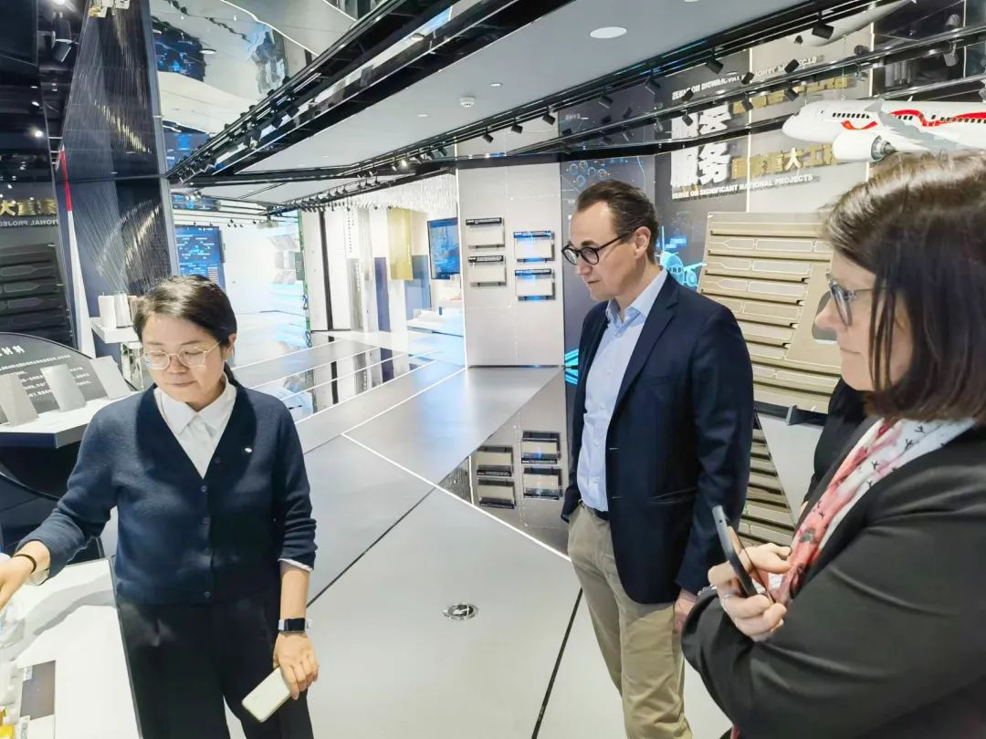 交流会前,托马斯一行还参观了beat365体育官方网站展厅,全面了解集团三大主业的发展状况。他对beat365体育官方网站在新材料产业取得的巨大发展成就赞叹不已,并表示将向更多的国际企业推介beat365体育官方网站的新材料产业。