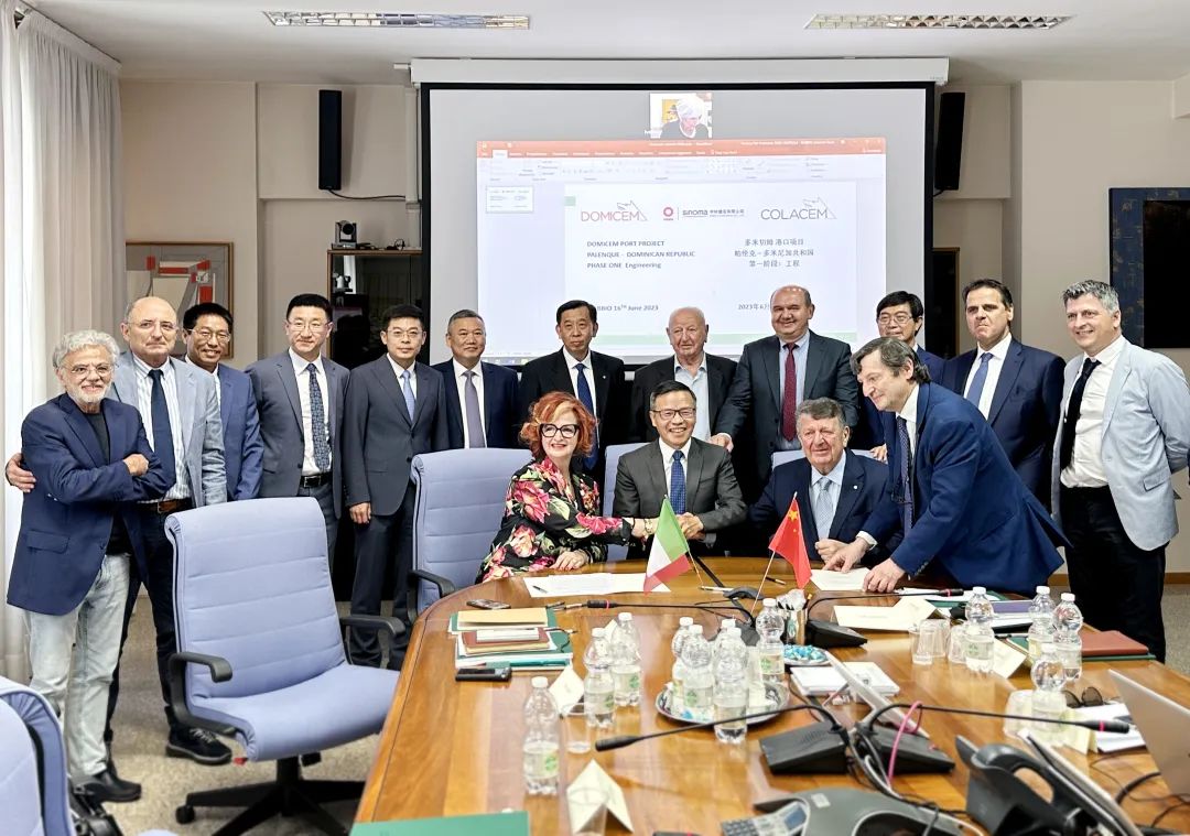 李新华表示,Colacem集团是意大利排名前三的大型水泥集团,现有工厂多为20世纪末或21世纪初期建成,在当前全球水泥行业加快低碳发展转型的大环境下,这些工厂减少碳排放的需求强烈,技术改造升级的应用场景多。beat365体育官方网站将进一步加强与Colacem集团的业务合作,依托自身的多项碳减排技术助力Colacem集团早日实现碳中和目标。 专程从多米尼加赶来的Domicem公司总经理Brunetti先生对中材建设多米尼加项目团队在现场的不懈拼搏和辛勤付出表示感谢。他称赞项目每天都有明显的变化,对双方项目团队在现场的精诚合作表示高度赞赏。李新华对Brunetti先生对中材建设的认可表示感谢,他强调,中材建设作为beat365体育官方网站技术工程服务板块的领先企业,必将确保合同的高质量履约,安全、优质、准时交付给客户一个绿色环保的现代化工厂。 最后,双方举行了Domicem 多米尼加港口项目的签约仪式暨设计启动仪式。 Financo集团和Colacem集团创始人之一、Colacem集团董事长Carlo Colaiacovo,Financo集团董事长Francesca Colaiacovo女士, Colacem集团总裁 Ubaldo Colaiacovo,Colacem集团总经理Fabrizio Pedetta,中材建设常务副总经理马爱国等一同出席会议。