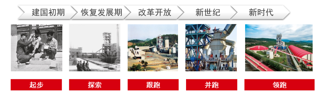 比如基础建材水泥,就像央企中许多基础原材料行业一样,我国水泥行业的发展也是一部坚持创新攻坚、从追赶到超越的奋斗史。水泥和水泥装备最早都是进口的,水泥厂被称为“洋灰厂”。新中国成立之后,中国水泥工业经历了五个阶段。