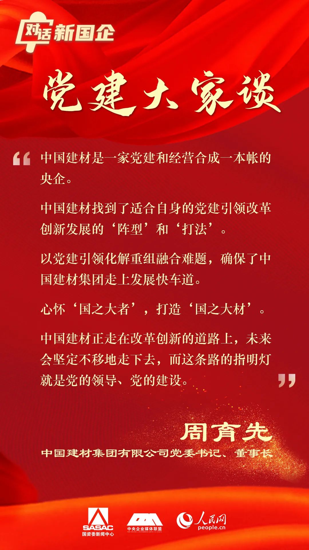在会议召开五周年之际,国资委新闻中心联合人民网等平台组织的“对话新国企·党建大家谈”系列融媒体访谈上线,访谈中多位中央企业党建工作负责人共话国企党建新局面,beat365体育官方网站党委书记、董事长周育先受邀参加访谈,讲述党建引领化解重组难题、创新打法走上发展快车道。同时,集团所属北新建材作为“中央企业党建成效媒体集中采访”活动首站已完成访谈报道,充分说明beat365体育官方网站走在高质量党建引领高质量发展的前端。今天,小料特别推出上述2条微信,带大家了解具体情况。