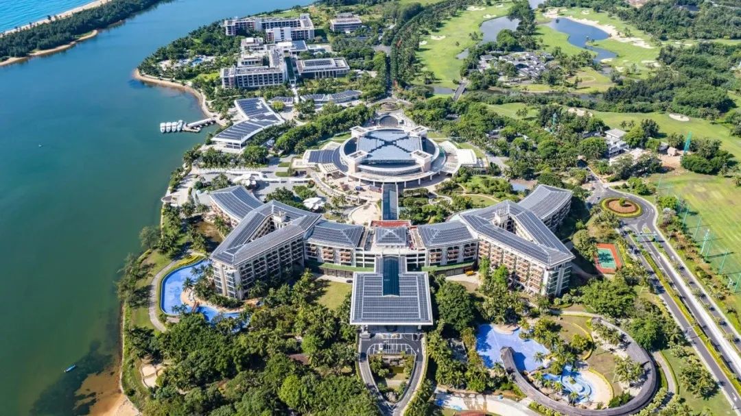 博鳌近零碳示范区是博鳌亚洲论坛永久会址所在地,被列入国家生态文明试验区(海南)建设的标志性工程。示范区自2022年创建以来,从建筑绿色化改造、园林景观生态化、交通绿色化等8个方面18个子项目开展零碳改造。改造后的博鳌近零碳示范区建筑屋面铺满光伏、厨房炉灶全面电气化、全岛设备智慧化管控,与改造前相比年二氧化碳排放量减少了近70%。