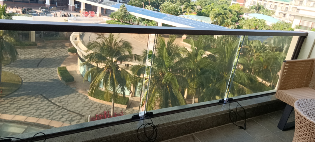 在亚洲论坛会议中心酒店的改造中,使用大面积碲化镉发电玻璃直接作为玻璃栏杆,精细的刻线技术,保障了室内看向室外的通透视觉和室外看向室内的遮挡性,保护了入住宾客的隐私。大面积碲化镉发电玻璃具有优异的温度系数和良好的抗衰减性能,且在清晨、傍晚等低照度条件下的发电效果更好,无惧栏杆安装角度,既可以减少热带地区强烈阳光的照射,又能发电供建筑使用,满足公共建筑的围墙功能,又符合低碳示范岛的绿色能源、智慧能源、创新能源的绿色环保理念。