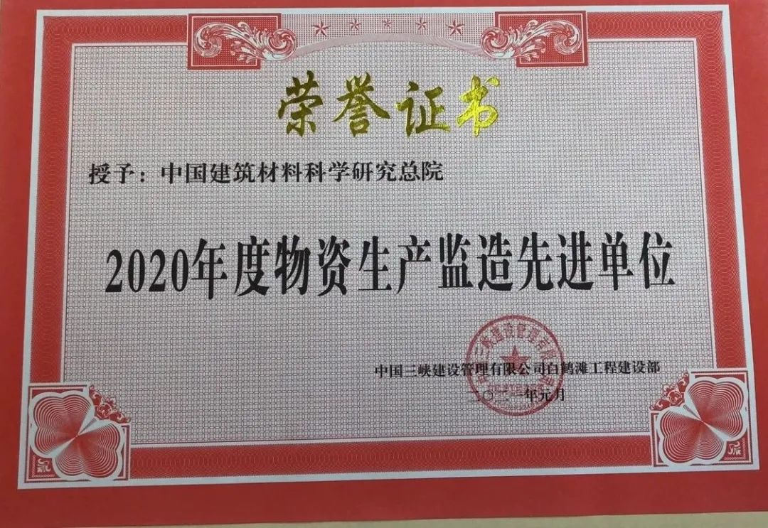 8年来,中国建材总院共监造低热水泥300余万吨,低热水泥质量全部满足工程技术要求,为白鹤滩水电站300米级特高拱坝“无缝大坝”的建设质量奠定坚实的基础。中国建材总院在技术上不断精益求精,质量上一丝不苟,多次被中国三峡建设管理有限公司白鹤滩工程建设部授予“先进监造单位”“先进监造个人”等荣誉。