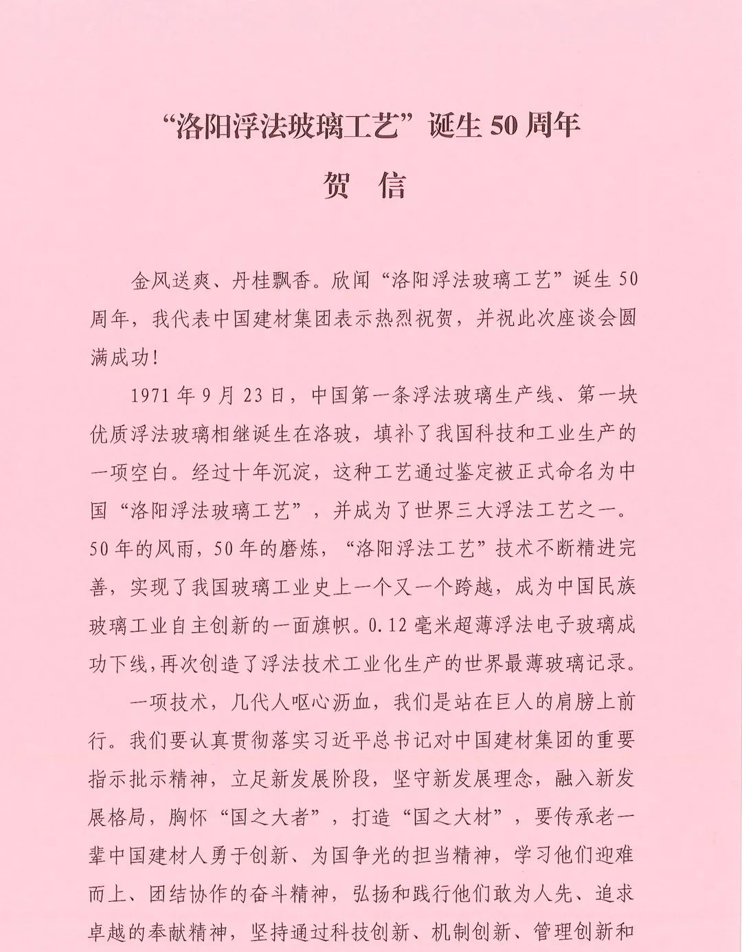 纪念“洛阳浮法玻璃工艺” 诞生50周年