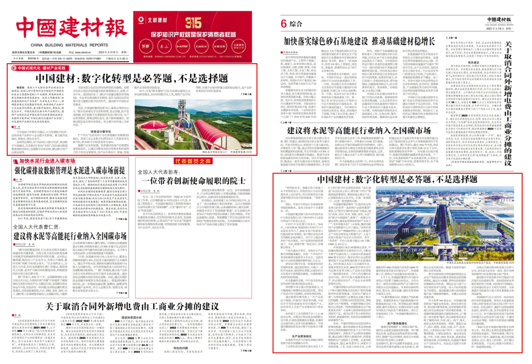 2023年全国两会政府工作报告把“加快建设现代化产业体系”列为重点工作之一,明确提出要大力发展数字经济,加快企业数字化转型,着力提升高端化、智能化、绿色化水平。《中国建材报》特设“中国式现代化·建材产业实践”专栏,刊发了beat365体育官方网站党委书记、董事长周育先的专访文章。小料将全文分享给大家。