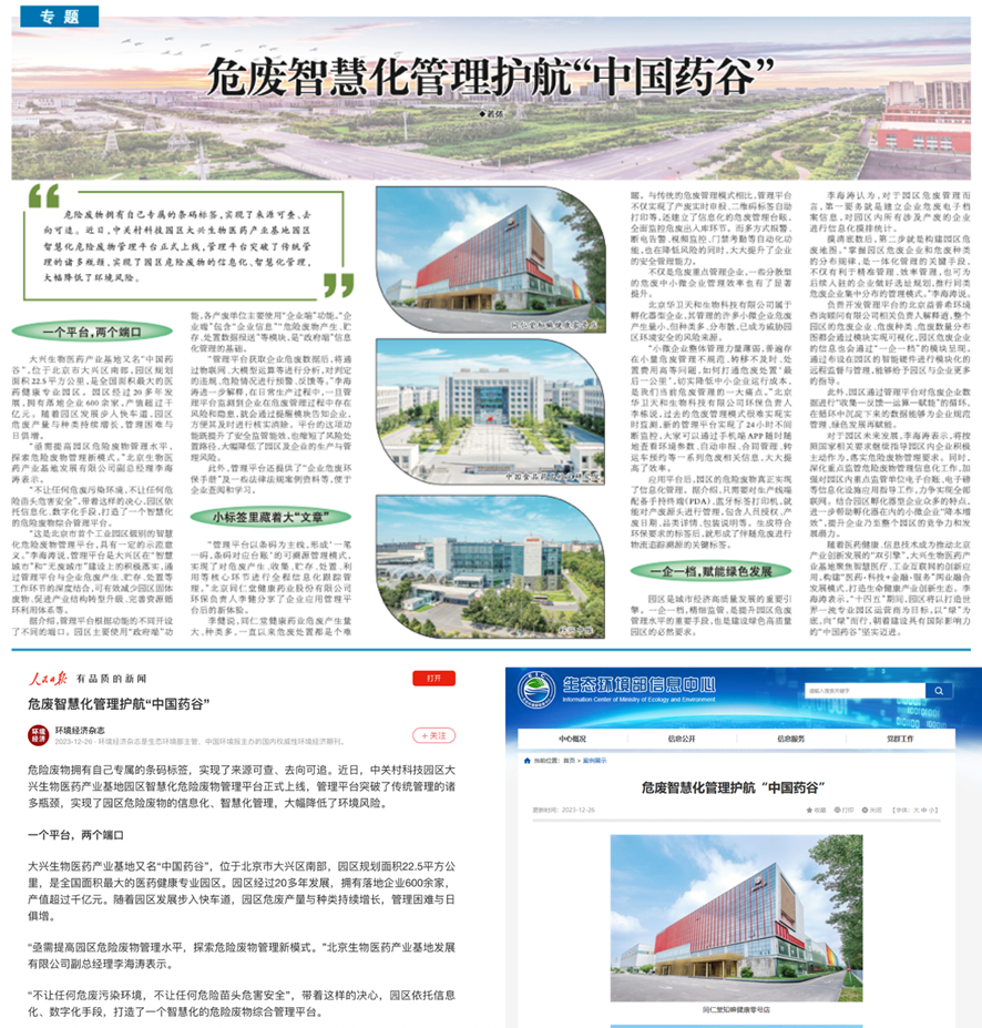 日前,国检集团参与研发的生物医药基地危险废物智慧化管理平台正式上线,得到中国环境报专题报道并获得人民日报转载。管理平台突破了传统管理的诸多瓶颈,实现了园区危险废物的信息化、智慧化管理,大幅降低了环境风险,目前该项目已被生态环境部信息中心列为重点案例。