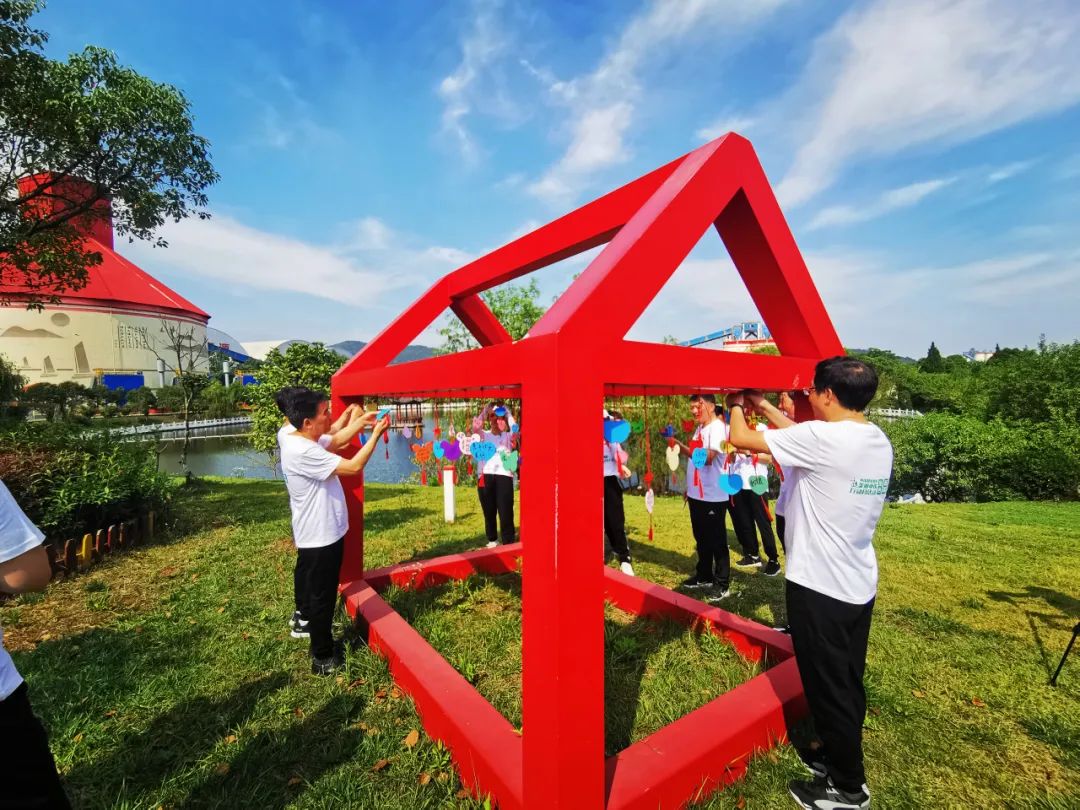 在协同处置大厅,大家集体观看垃圾协同处置以及垃圾分类知识专题片,了解城市生活垃圾“减量化、无害化、资源化”的实际效果,并在风铃牌上写下绿色发展寄语,悬挂于爱心湖畔的心愿亭。