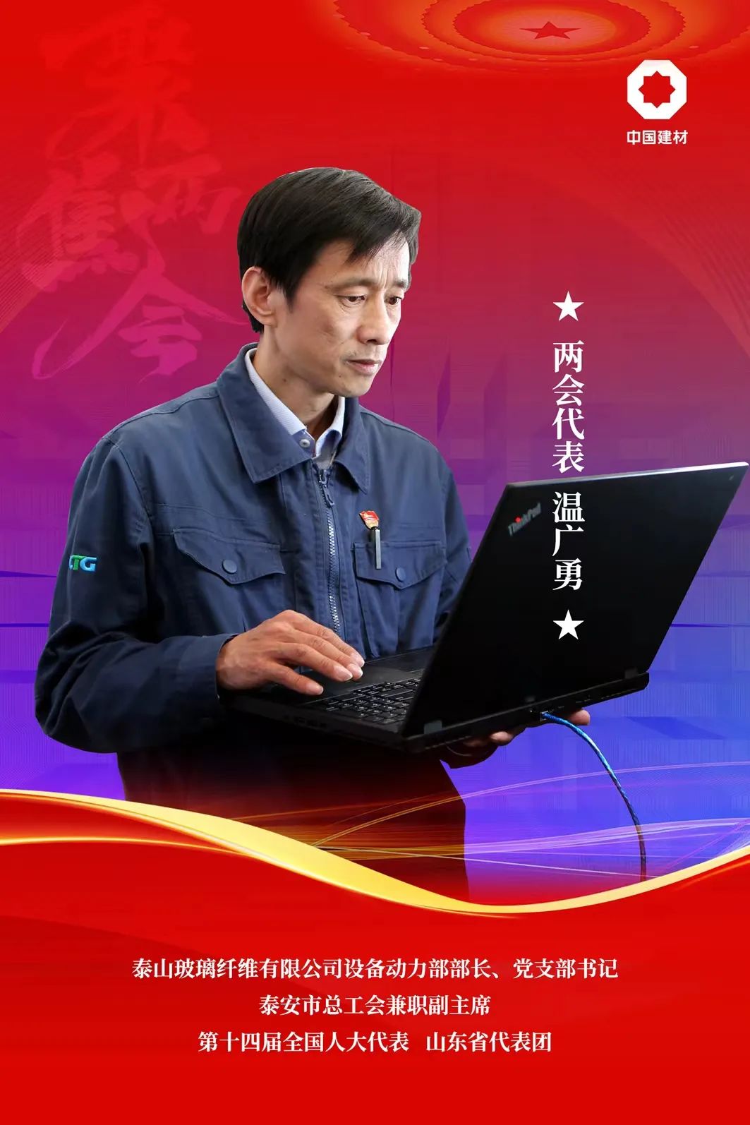 2023年,彭寿连续第三次当选为全国人大代表,将围绕国家创新体系建设、新型建筑体系建设、推动行业绿色转型等方面持续发声。 作为十二届、十三届全国人大代表,彭寿已连续10年向全国两会提交44条议案和建议,并给出具体方案助力推动落地,部分建议被全国人大常委会列为重点督办建议。 10年来,彭寿5次在代表团全体会议上专题发言,每一次的关键词都有“创新”。 他坚持深入基层一线实地调研,用心倾听行业和群众心声,真正做实事解难题,把基层呼声带进全国两会,把中央精神带回工作岗位。 面对充满机遇的未来,彭寿将结合深入学习贯彻党的二十大精神,坚持继续强化自主创新能力建设、强化世界一流企业培育、强化人才自主培养体系、强化产业生态优化融合,全力打造科技创新策源地,为中国玻璃全面领跑世界努力奋斗。 作为风机制造行业的从业者,刘锦帆一直扎根西北,追逐着发展风电事业的梦想。今年两会,她将关注新能源产业动态,为新能源装备制造产业助推低碳转型发展提出建议。 刘锦帆接受新华社采访 刘锦帆现任中材叶片酒泉公司主任工程师。自2009年进入公司,从事风力发电新能源建设工作,她是第一批与公司共发展,见证公司发展的风电人。 她用踏实和敬业赢得了同事的一致赞扬,用智慧和汗水谱写了知识型、技术型工人的精彩华章。她多次被评为公司“优秀共产党员”,先后被授予“酒泉市五一巾帼奖”、“甘肃省劳动模范”及2020年全国劳动模范、2021年第七届全国建材行业十大女杰等荣誉称号。 首次当选全国人大代表,温广勇积极参加各种履职学习培训和专题调研,结合自身工作,将目光投向职业技术教育、核心器件国产化与农民工群体。 温广勇自2002年3月进入泰山玻纤工作,从一线电气维修人员做起,扎根泰山玻纤20多年,凭借勤学苦练不服输的工作精神和赞誉满满的杰出成绩,赢得了业界人士一致好评,在泰山玻纤创建了“温广勇创新工作室”,曾获得“山东省劳动模范”“齐鲁首席技师”“齐鲁大工匠”“全国劳动模范”等荣誉称号。 温广勇表示,对制造行业来说,技能人才尤为重要,这几年明显感受到了企业的快速发展和对人才的迫切需求。他建议加强校企融合,企业和职业院校各往中间走一步,更新教材、设备,加强培训,积极应对新变化、新方式、新技能等共同挑战,培育新时代的技术人才。 温广勇也关注“农民工”现象。他注意到,在制造行业,有操作规范、作业指导书等,可以保证安全生产和生产质量。但在“农民工”群体中,缺少这一关键环节,安全和质量很难把控。他建议各行各业梳理相关规范化流程,加强对“农民工”这个群体的关注和培训,提升他们的职业技能。 他们表示 当选全国人大代表 不仅是一种崇高的政治荣誉 更是一份沉甸甸的神圣使命 他们将认真履职、建言献策 为建材行业高质量发展 为中华民族伟大复兴贡献力量!