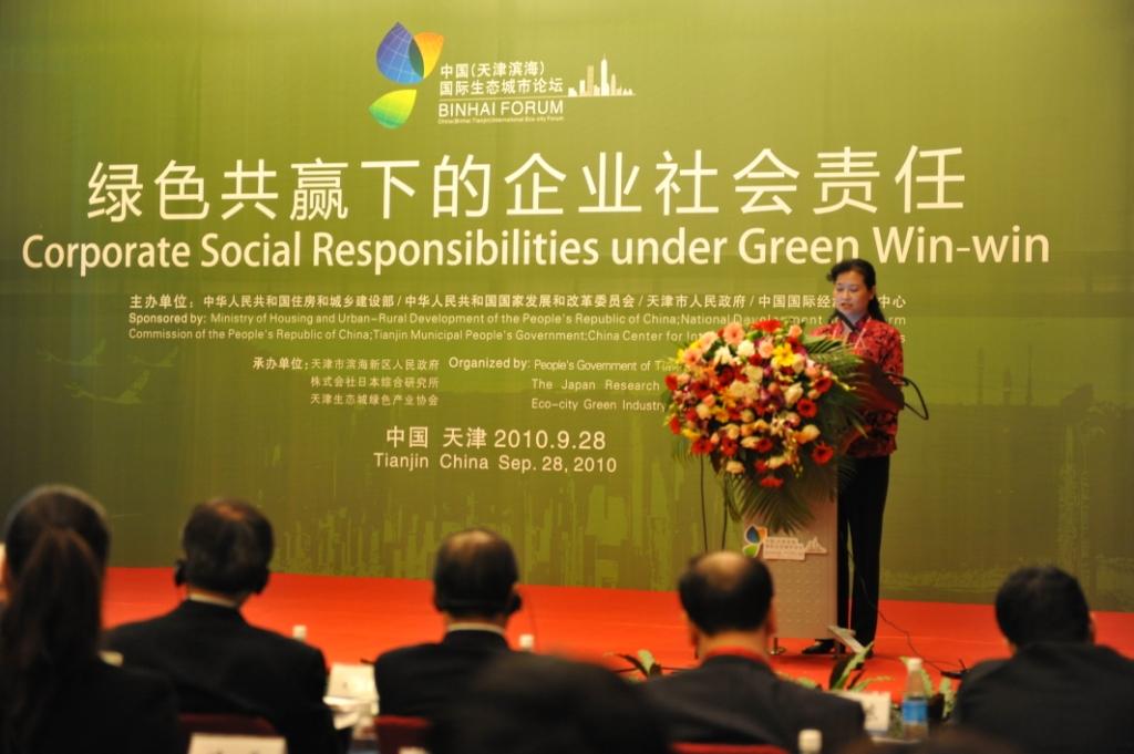 来源:CNBM 发布时间:2010-10-21 日前,首届“中国(天津滨海)国际生态城市博览会”和“中国(天津滨海)国际生态城市论坛”在天津滨海新区开幕。期间,中国建筑材料集团有限公司总经理、中国建筑材料科学研究总院院长姚燕在“绿色共赢下的企业社会责任”分论坛上发表题为“做履行社会责任表率促企业社会共赢发展”的专题演讲。
