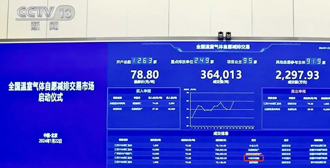 所属企业中建材绿能的示范交易成为央视报道中仪式现场演示的五笔交易之一
