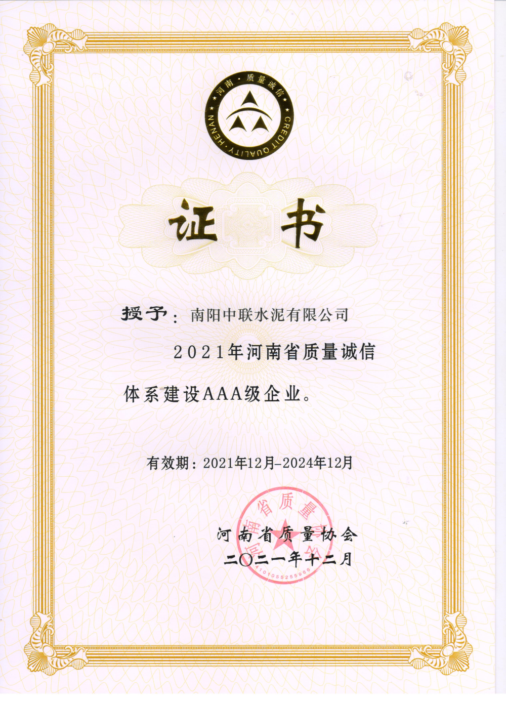 诚信者,天下之结也。南阳中联将继续倡导诚信精神,落实“质量是我们的自尊心,服务是我们的竞争力”经营理念,积极开拓创新,强化质量管理,坚持诚信经营,注重品牌建设,不断提高企业的质量信用,树立公司质量诚信的金字招牌,在高质量发展之路上再创辉煌。