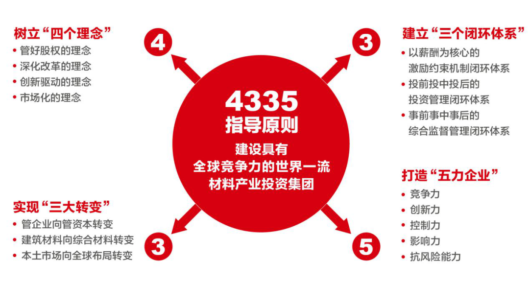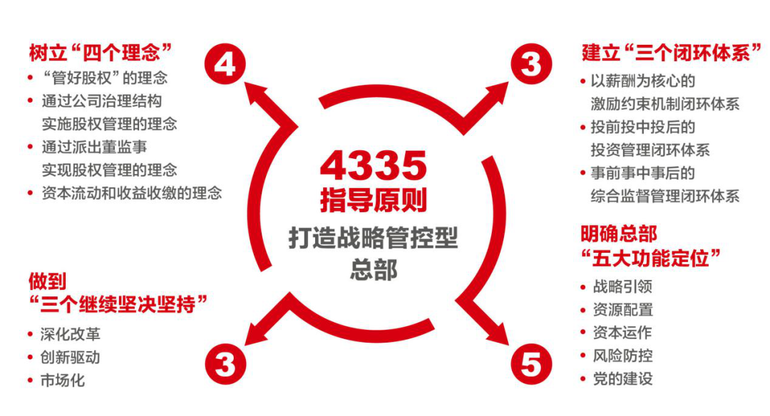 2019年9月,我们获批国有资本投资公司改革试点,2020年2月,我们确立了集团和总部‘4335’指导原则。在“4335”指导原则下,集团党委又制定印发了符合集团特点的“1345”党建工作体系,作为全级次党组织加强和改进党的建设的基本任务。