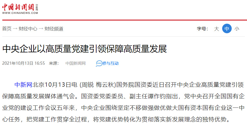 人民政协网、中国新闻网、腾讯网、今日头条 等网站报道中央企业高质量党建引领保障高质量发展通气会