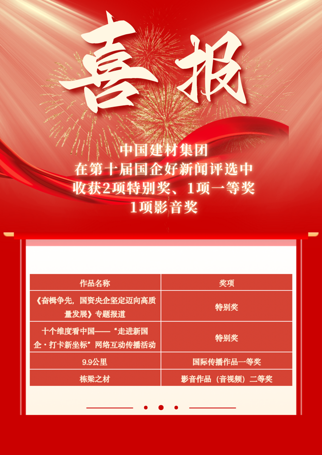 喜报!中国建材四项作品获评第十届“国企好新闻”