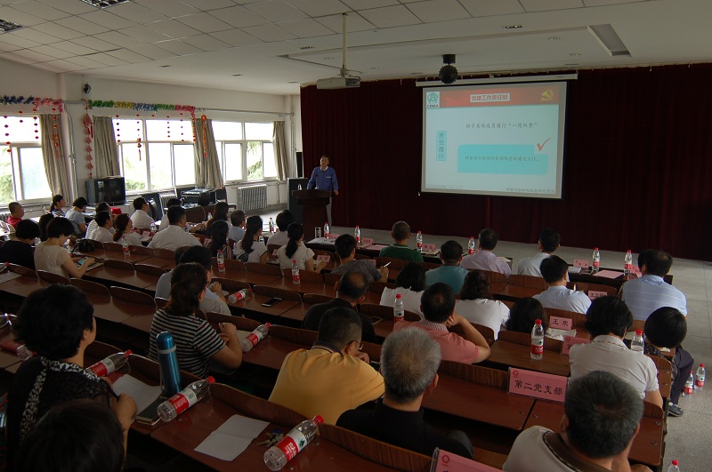 来源:中国建筑材料科学研究总院 发布时间:2017-07-246月30日,按照集团党委和总院临时党委的部署安排,西安院所召开了“两学一做”学习教育常态化制度化推进会。“两学一做”学习教育的常态化制度化的核心要求是牢固树立党的一切工作到支部的鲜明导向,在支部落实“三会一课”制度,因此此次会议邀请西安三家院所的支部书记示范讲党课。同时为落实总院领导干部联系点制度要求,总院临时党委书记王益民同志带头深入总院西安三家院所调研了解基层党组织开展党建情况,并为联系点全体党员讲党课。总院直管党委西安墙材院全体党员,咸阳院和钟表所全体党委委员、领导班子、党员干部和近百名普通党员、入党积极分子参加了推进会并共同聆听了王益民同志的专题党课。党课由西安墙材院党委副书记权宗刚主持。