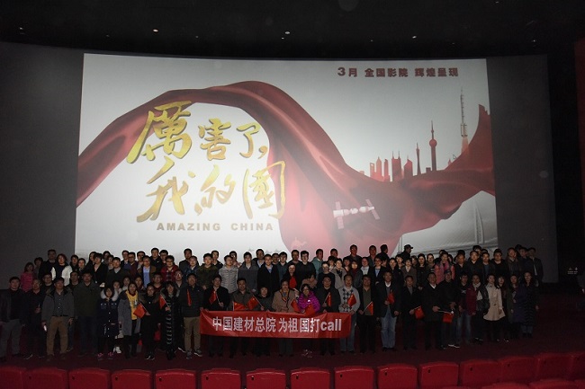 来源:中国建筑材料科学研究总院 发布时间:2018-03-05 3月2日,在大型纪录电影《厉害了,我的国》全国上映的第一天,中国建材总院第一时间组织千余名党员员工集中观看,走进影院为祖国打call。凝聚中国力量,弘扬中国精神,影片中记录了多个里程碑式的科研成果,都闪现着总院以科技创新的磅礴力量助推祖国发展。