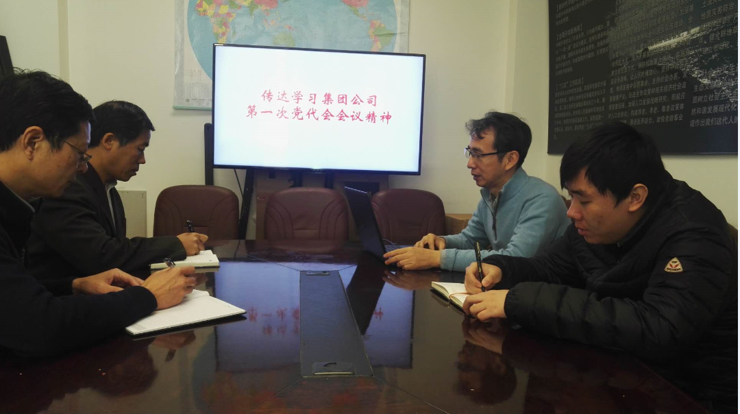 2019年1月4日,科技中心党总支召开全体党员学习大会,学习集团党委印发的集团第一次代表大会党委工作报告,宣传贯彻集团公司第一次党代会精神,讨论交流学习体会和自己对报告的理解。