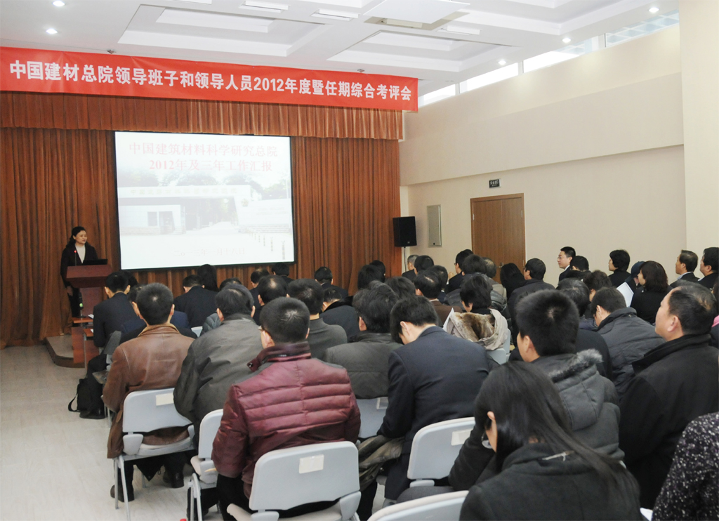 来源:中国建筑材料科学研究总院 发布时间:2013-02-04元月18日上午,中国建材总院召开领导班子和负责人2012年度暨任期综合考评会及民主测评会。beat365体育官方网站总经理、总院院长姚燕,集团公司党委副书记、纪委书记郝振华出席会议并作重要讲话。集团公司考核组成员周国萍、姚文君、朱钦鹰、温林博等到会指导,总院全体中层干部和职工代表等100人参加会议,考评会由总院党委书记王益民主持。