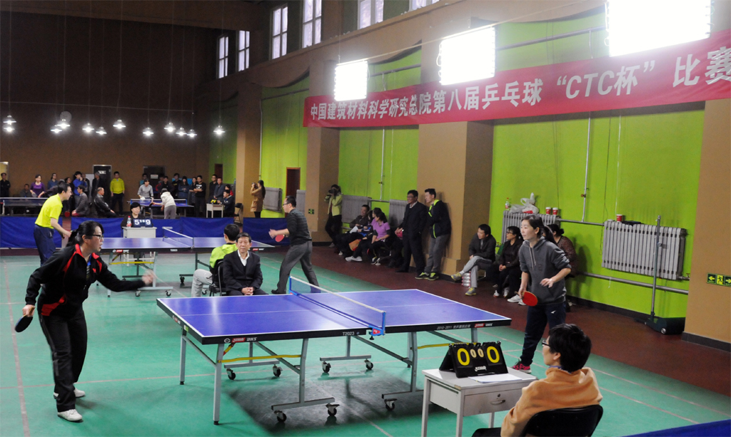 来源:中国建筑材料科学研究总院 发布时间:2015-05-064月14~17日,中国建材总院工会在北京科技大学体育中心举办第八届乒乓球“CTC杯”赛。本届比赛由中国建材检验认证集团工会(CTC)承办,共有9个团体代表队参赛。经过4天的激烈争夺,CTC代表队获冠军,水泥新材院代表队获亚军,石英院与瑞泰科技代表队并列季军。
