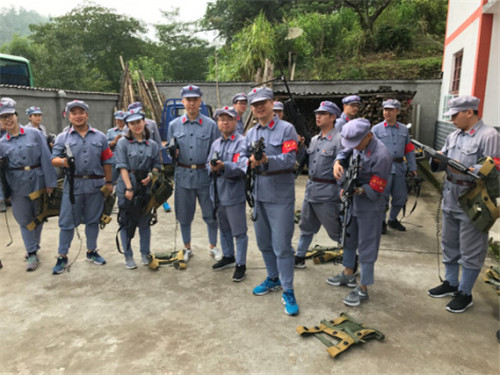 反围剿阻击战是今天最令人激动的项目之一,大家身着防弹衣,手持长短不一的各种武器,机枪、冲锋枪、狙击枪……大家按照老师的安排分成了“国军”和“红军”两队,以小学校为中心展开了激烈的争夺!