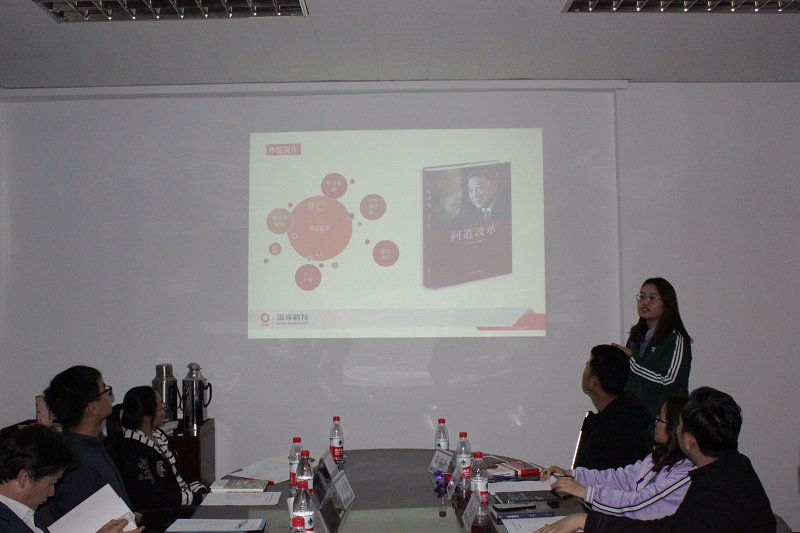 三位来自不同单位的主讲人围绕《习近平在正定》、《第四次工业革命》、《问道改革》三本书向大家分享了自己的读书心得。职能财经资产部的石萍选择的书目是《习近平在正定》,她分别从搞活经济-解放思想,意识超前,开创性工作思维;招贤纳士-人才是经济发展、翻番致富的根本;旅游兴县-前瞻性的战略发展眼光、超人的魄力三方面讲述了习总书记在正定的故事。她指出作为新时代的青年,我们要开拓创新,勇于担当,争做新时代的坚定者、奋进者、搏击者,不忘初心,牢记使命,砥砺前行。中岩科技的赵朔分享的书目是《第四次工业革命》,他指出第四次工业革命可能让人类变得数字化,从而掩盖我们生存意义的传统根源,包括工作、社区、家庭和身份认同。然而,我们依然能够并应该利用第四次工业革命的机遇,将人类的道德意识水平提升至新的高度,以共同的使命感为基础。要实现这个目标,我们所有人都义不容辞。瑞泰科技的刘楠讲述的书目是《问道改革》,她围绕攻克艰难,改革创新来讲述瑞泰科技推动新技术、新产业、新业态蓬勃发展,为经济持续健康发展提供源源不断的内生动力;不断提升产品市场竞争力,最终跳出低端恶意竞争,开拓国内外高端市场以及党的建设成为企业高质量发展的强大引擎。