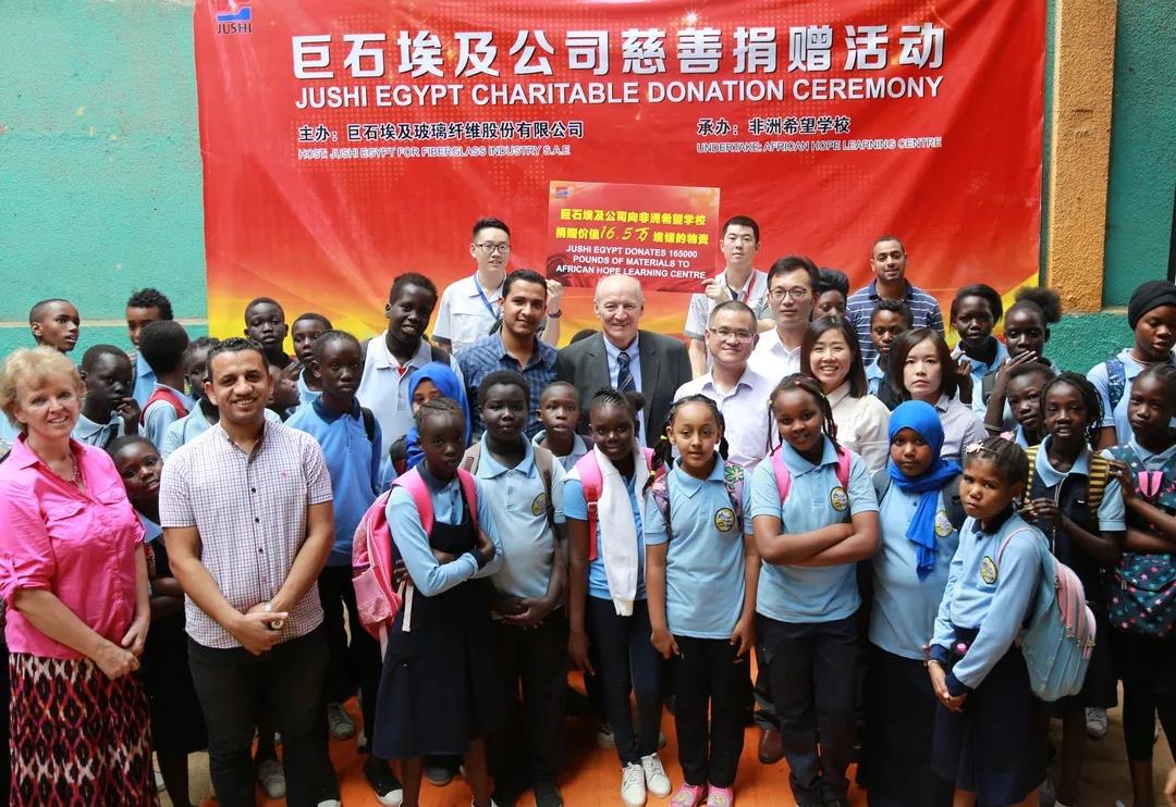 巨石埃及公司自成立以来,在生产经营的同时始终不忘履行世界公民责任,以绿色环保和共赢发展的理念,开展了“保护海洋环境 还海滩一片清洁”、斋月慈善捐款等各类公益活动,公益之路越走越宽。作为中非经贸合作的典范,巨石埃及公司在国际化和本土化的过程中,不断发扬乐善好施、互相尊重的品格,努力成为“一带一路”上的形象大使,为中埃的共同发展做出积极贡献。
