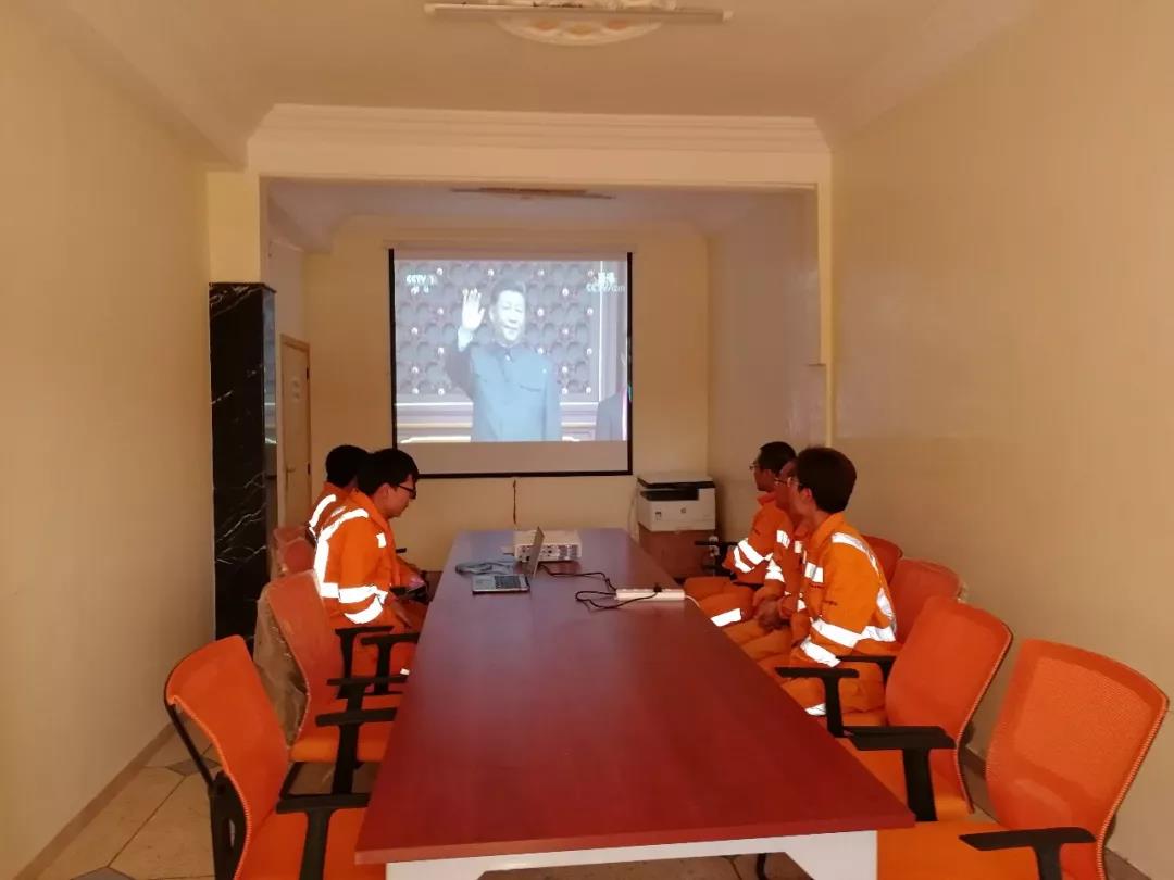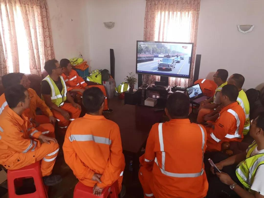身在万里,情系祖国,中材国际坦桑尼亚分公司组织职工收看国庆阅兵典礼。