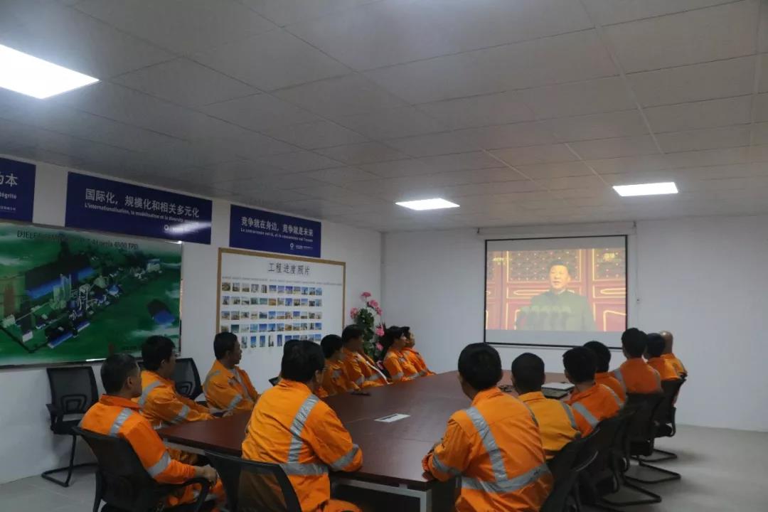 苏州中材印尼Bayah二期项目部组织观看庆祝大会直播,随着雄壮的军乐声响起,项目部全体起立,行注目礼,唱国歌,为我们伟大的祖国骄傲,为身为中国人民而自豪。