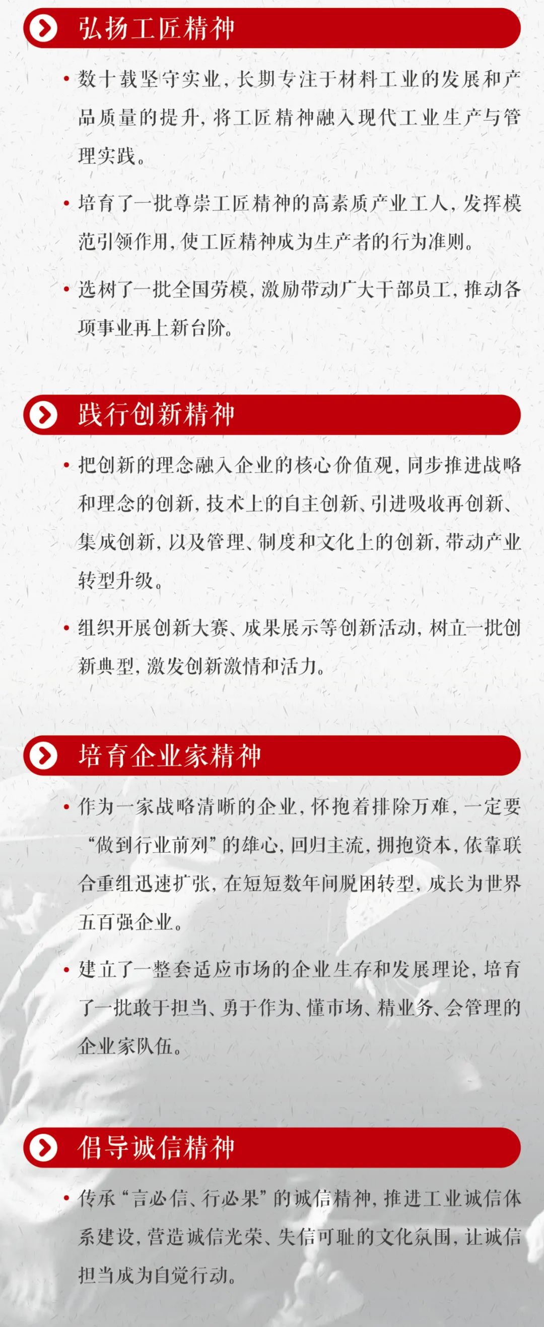 来源:集团党委宣传部 发布时间:2021-01-09企业文化是企业的灵魂。我们一路走来,创造了一部不忘初心、艰苦奋斗的辉煌历史,从草根央企成长为世界五百强企业,也铸就了一套独具特色的文化体系。我们分阶段系统开展企业文化提升暨文化手册编制工作,第一阶段完成了全级次摸底调查(点击蓝字可查看),第二阶段汇聚全体员工的集体智慧,梳理升级文化体系,编印《企业文化手册》。手册不仅展示了beat365体育官方网站深厚的文化积淀、丰硕的文化成果,更重要的是清晰地回答了我是谁、我在哪里、我怎么做三个问题。