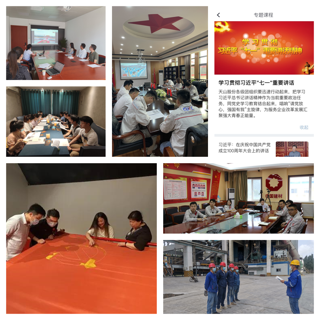 新疆天山水泥团委以公司智慧党建app“复兴壹号”为依托,搭建“掌上课堂”有效扩大青年学习覆盖面;叶城天山公司团支部将学习搬至一线现场,利用班前会在生产现场学习党史和总书记讲话,教育引导团员青年职工淬炼品格、钻研业务。