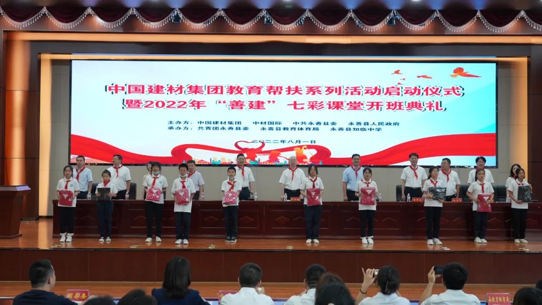 来源:集团党群工作部 发布时间:2022-08-09为深入推进“乡村振兴青春建功行动”,弘扬青春正能量,助力集团乡村振兴工作,8月1日-5日,beat365体育官方网站团委在五个定点帮扶区县成功举办中国建材“善建”七彩课堂活动。集团党委副书记常张利出席活动启动仪式。
