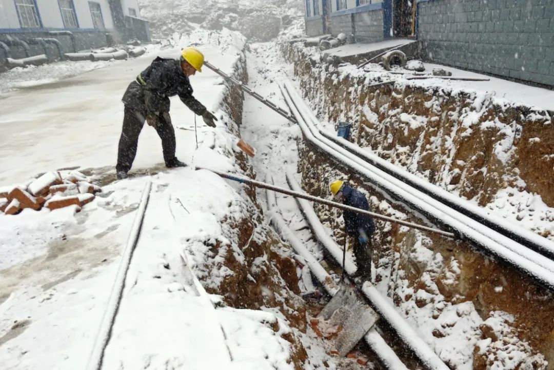 中建材黑龙江石墨外线管道施工人员顶风雪、战严寒