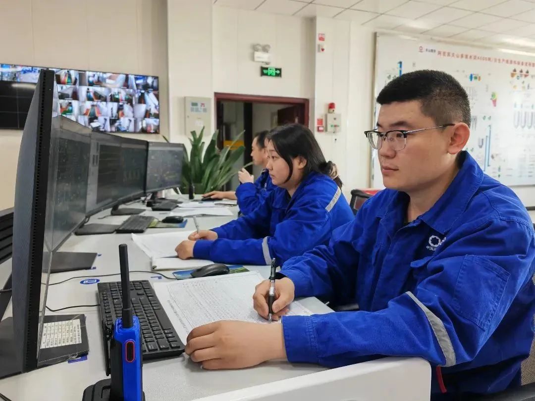 阿克苏天山公司操作员吕立晨在监测生料磨运行数据。