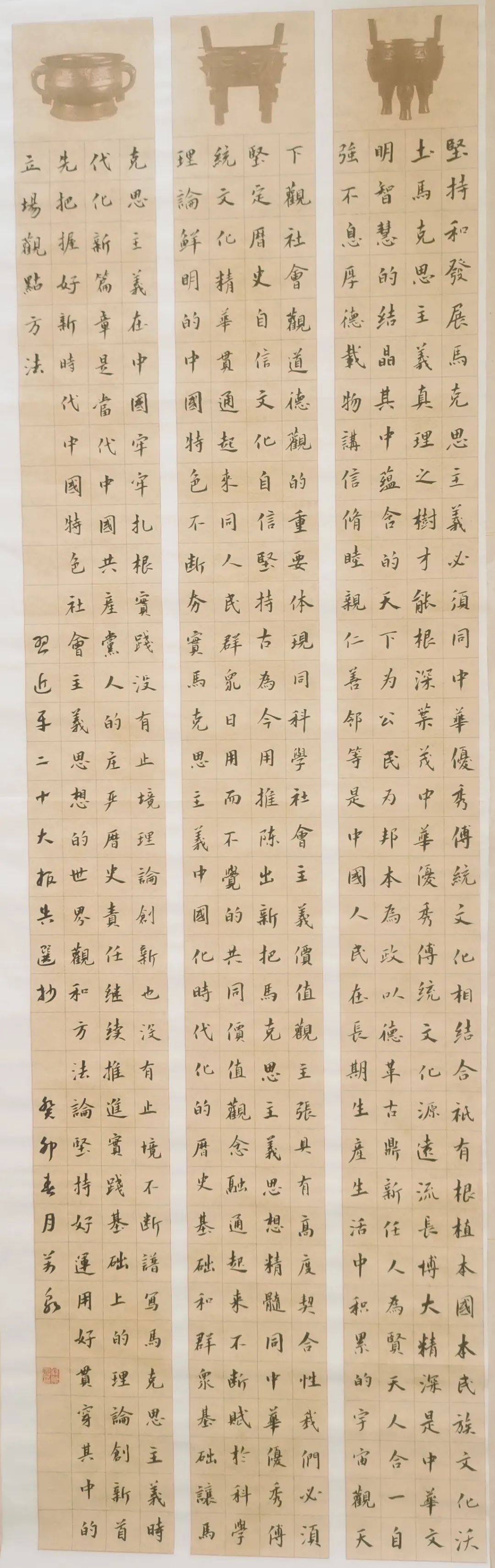 本次主题展览网上直报平台共收到380件作品,经过专家评审筛选,最终评选出46件书法、38件绘画、51张摄影、5件篆刻,共140件作品展出。创作者代表、职工代表、国海办公区讲解员等参加了揭牌仪式。