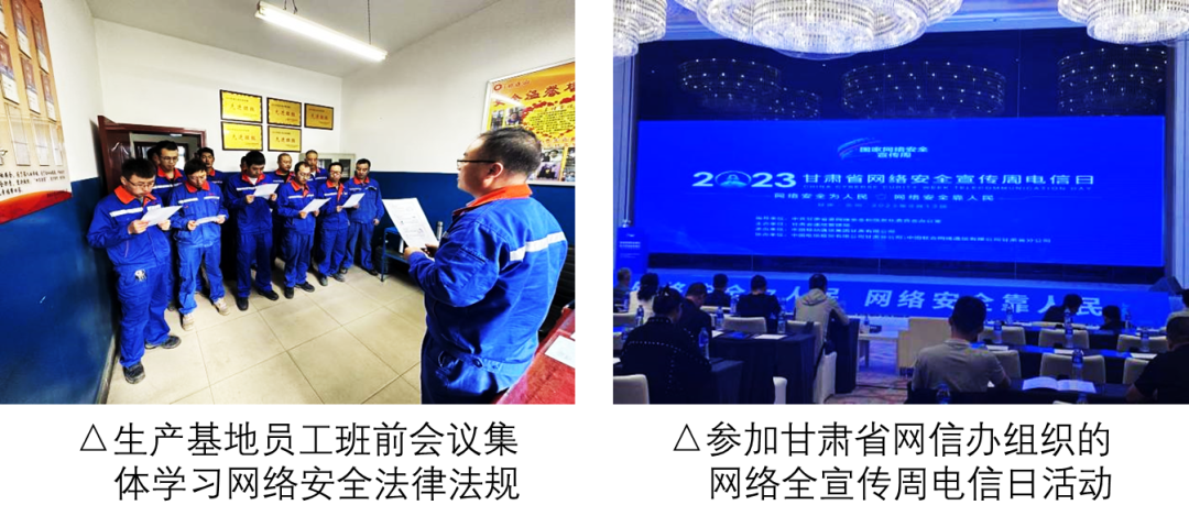 祁连山水泥参加甘肃省网信办组织的网络全宣传周电信日活动,组织生产基地员工班前会议集体学习网络安全法律法规,组织总部机关人员观看相关题材电影。